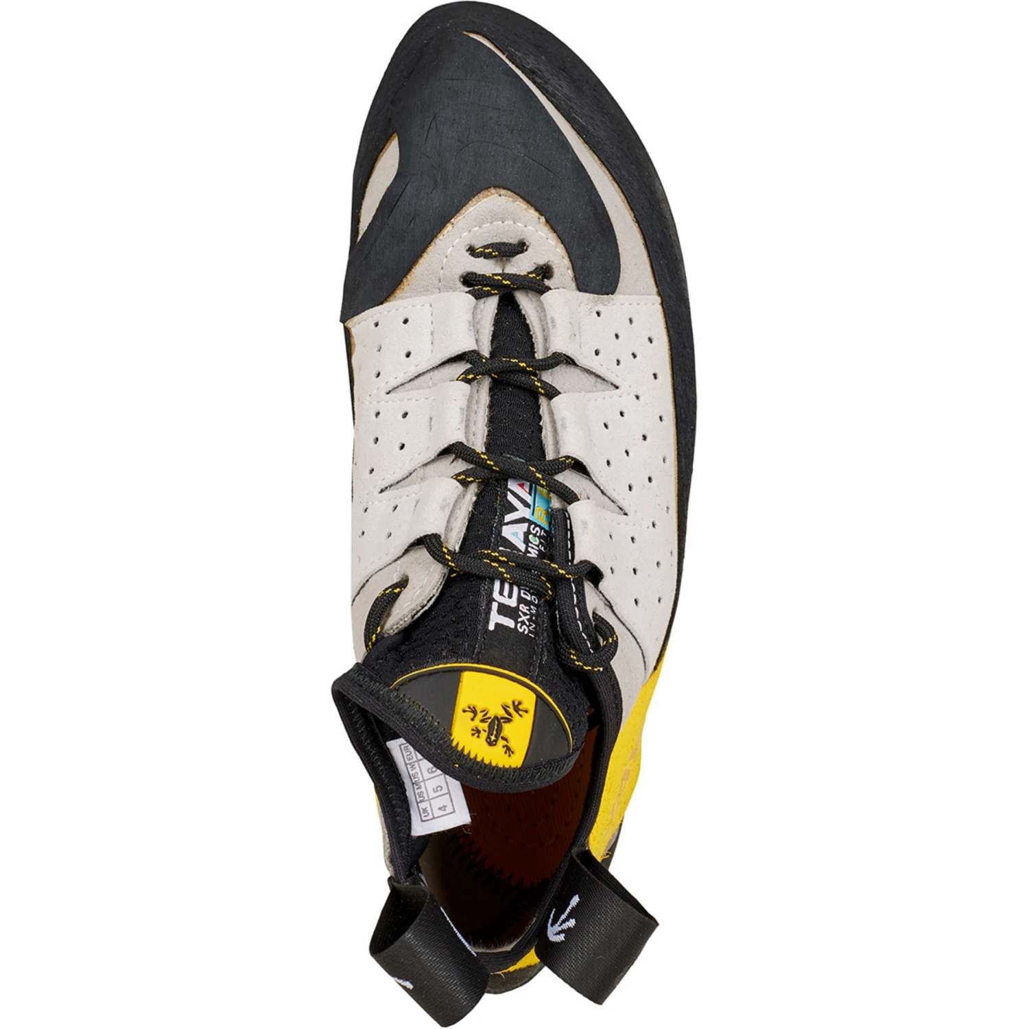 <p><span id=”result_box” class=”” lang=”en”><span class=”hps”>The</span> <span class=”hps”>Tarifa</span> <span class=”hps”>climbing shoe</span> by<span class=”hps”>Tenaya</span> <span class=”hps”>feels</span> at home <span class=”hps”>bouldering</span> <span class=”hps”>on tiny</span> <span class=”hps”>edges</span><span>, dents</span> <span class=”hps”>or</span> <span class=”hps”>slopers</span> <span class=”hps”>just as</span> much <span class=”hps”>as it does in</span> <span class=”hps”>hard</span> <span class=”hps”>multi-pitch</span> <span class=”hps”>routes.</span> <span class=”hps”>Nevertheless, it</span> <span class=”hps”>is just as comfortable</span> <span class=”hps”>as a climbing shoe</span> <span class=”hps”>without</span> pre-load<span class=”hps”></span><span>,</span> <span class=”hps”>despite</span> <span class=”hps”>its rather</span> <span class=”hps”>aggressive</span> <span class=”hps”>design</span><span>.</span><br></span></p><ul><li><span id=”result_box” class=”” lang=”en”><span class=”hps”>MRRB</span> <span class=”hps”>system</span> <span class=”hps atn”>(</span><span>maximum</span> <span class=”hps”>range</span> <span class=”hps”>in</span> <span class=”hps”>Reaction</span> <span class=”hps”>and Balance</span><span>) for maximum</span> <span class=”hps”>dynamics and</span> <span class=”hps”>perfect balance</span></span></li><li><span id=”result_box” class=”” lang=”en”><span class=”hps”>SXRDynamic</span> <span class=”hps”>system</span> <span class=”hps atn”>(</span>moveable tension<span class=”hps”> system</span><span>) for natural</span> <span class=”hps”>movement</span> <span class=”hps”>(including the</span> <span class=”hps”>toes)</span> <span class=”hps”>and</span> <span class=”hps”>precise footing</span></span></li><li><span id=”result_box” class=”” lang=”en”><span class=”hps”></span></span><span id=”result_box” class=”” lang=”en”>F<span class=”hps”>ew seams</span> <span class=”hps”>and</span> <span class=”hps”>cotton lining</span> <span class=”hps”>with</span> <span class=”hps”>TXT</span> <span class=”hps”>treatment</span> <span class=”hps”>for comfort</span></span></li><li><span id=”result_box” class=”” lang=”en”>P<span class=”hps”>erforated upper</span> <span class=”hps”>for</span> <span class=”hps”>enhanced breathability</span></span></li><li><span id=”result_box” class=”” lang=”en”><span class=”hps”>Elastane®</span> <span class=”hps”>upper for</span> <span class=”hps”>durability</span></span></li><li><span id=”result_box” class=”” lang=”en”>P<span class=”hps”>roven</span> <span class=”hps”>Vibram®</span> <span class=”hps”>XS</span> <span class=”hps”>Grip</span> <span class=”hps atn”>(</span><span>3.5</span> <span class=”hps”>mm)</span> <span class=”hps”>for</span> excellent <span class=”hps”>grip</span></span></li></ul><p><span id=”result_box” class=”” lang=”en”> <span class=”hps”>Weight:</span> <span style=”font-weight: bold;”><span class=”hps”>680</span> <span class=”hps”>g</span> <span class=”hps”>(pair</span><span>,</span> <span class=”hps”>UK 8.5</span></span><span><span style=”font-weight: bold;”>)</span> |</span> <span class=”hps”>Sole:</span> <span class=”hps”><span style=”font-weight: bold;”>Rubber</span> |</span> <span class=”hps”>Midsole:</span> <span class=”hps”><span style=”font-weight: bold;”>Polyamide</span> |</span> <span class=”hps”>Upper material</span><span>:</span> <span style=”font-weight: bold;”><span class=”hps”>polyurethane, polyamide</span> <span class=”hps”>|</span></span> <span class=”hps”>Lining:</span> <span style=”font-weight: bold;”><span class=”hps”>cotton</span> </span><span class=”hps”>|</span> <span class=”hps”>Preload:</span><span style=”font-weight: bold;”> <span class=”hps”>Performance Fit</span> </span><span class=”hps”>|</span> <span class=”hps”>Asymmetry</span><span>: <span style=”font-weight: bold;”>medium</span></span> <span class=”hps”>| Color</span><span class=”atn”>: <span style=”font-weight: bold;”>white-</span></span><span style=”font-weight: bold;”>yellow</span></span></p>
